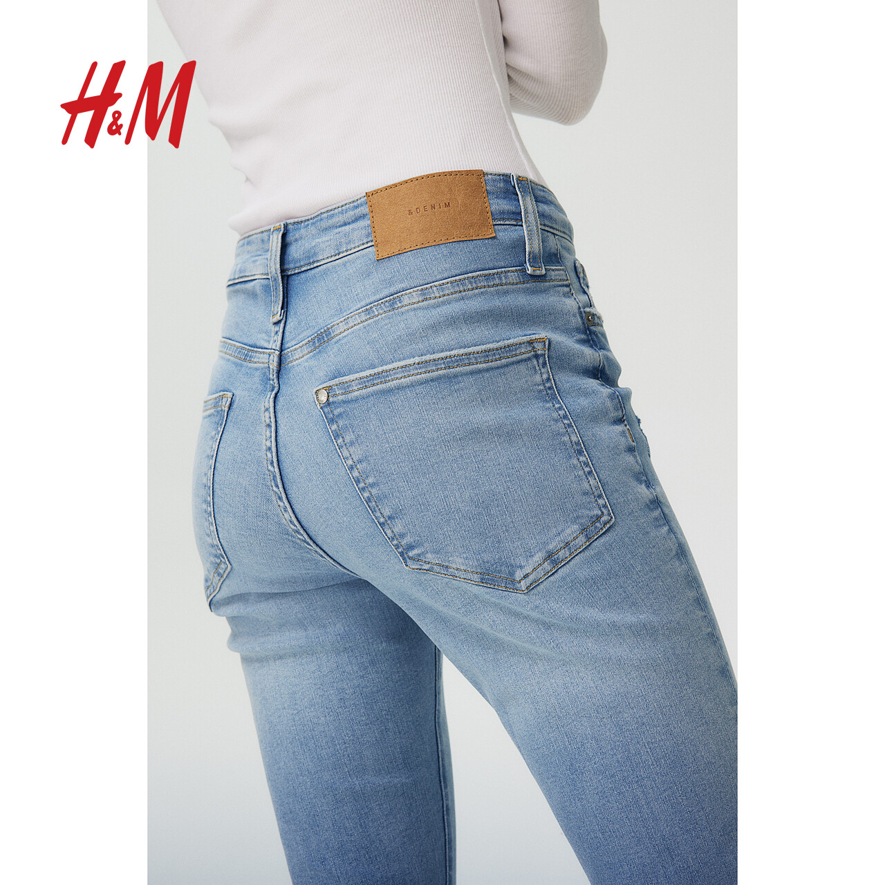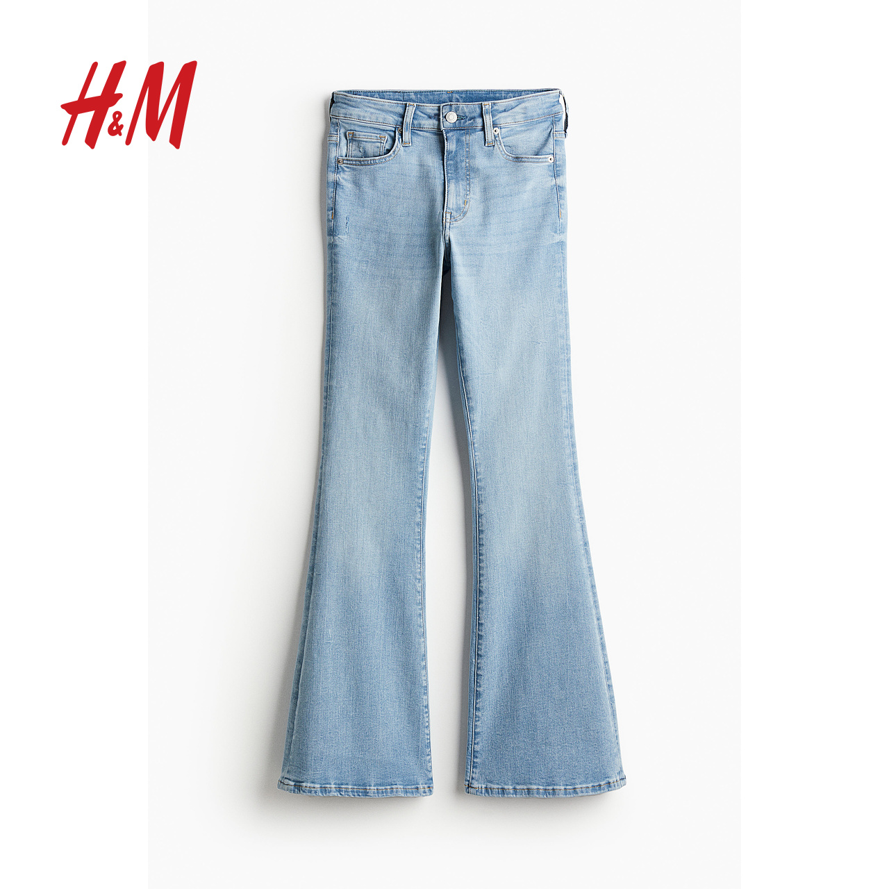 HM女装牛仔裤秋季新款高腰微喇舒适弹力修身时尚长裤1238764