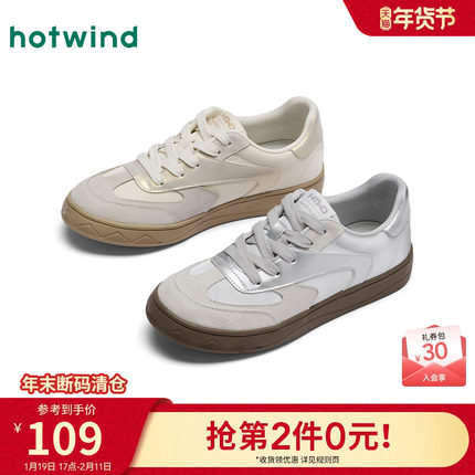 热风平底德训鞋女款2025年冬季新款银色户外休闲鞋子通勤轻便女鞋