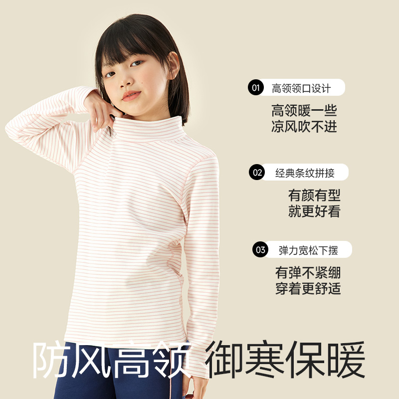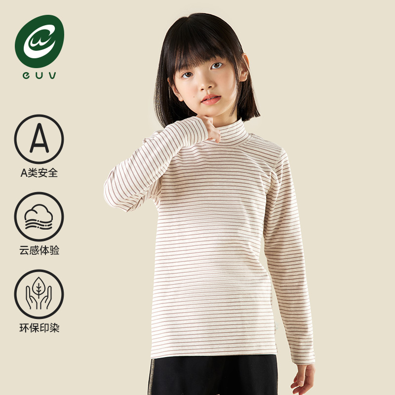 euv 儿童半高领打底衫男女童长袖t恤中大童条纹秋衣纯棉秋装上衣