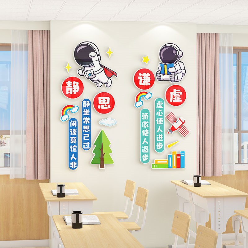 小学班级文化墙布置教室装饰激励学习励志标语宇航员太空人墙贴画