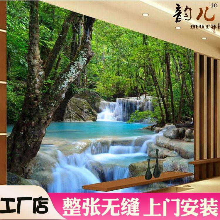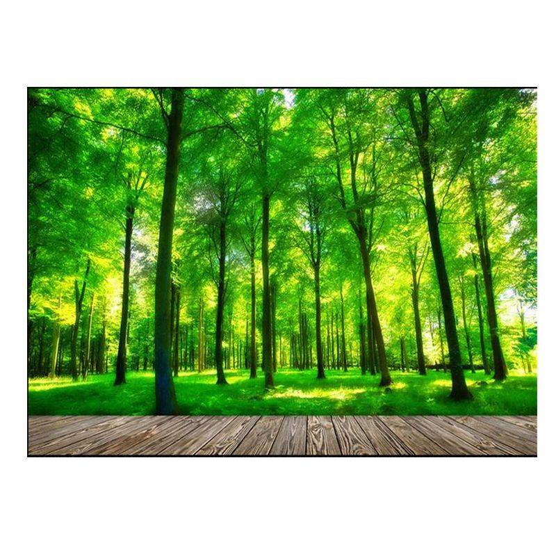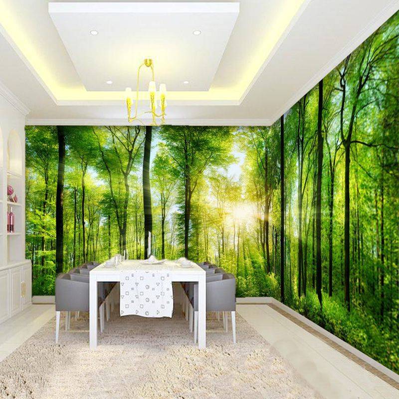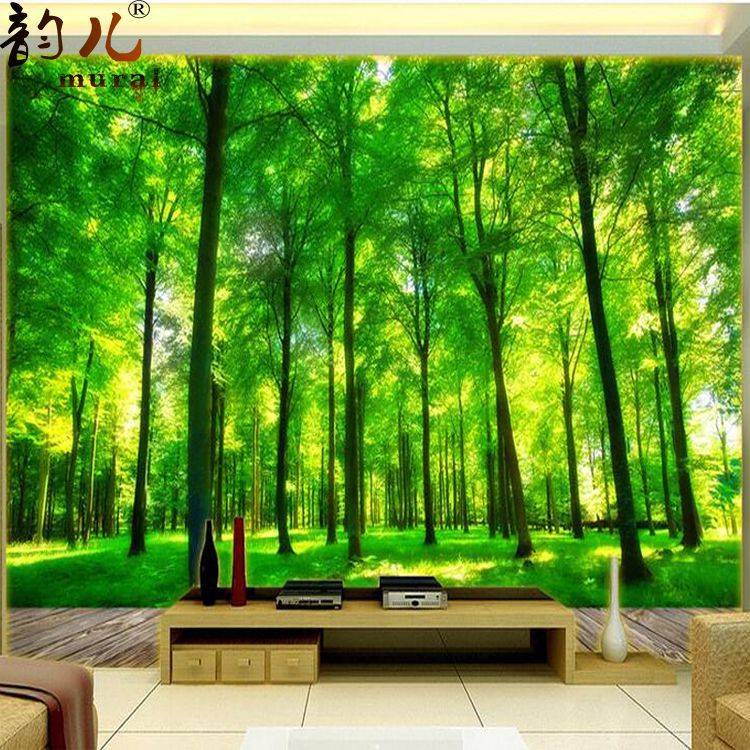 3d立体大自然墙纸客厅绿色森林壁纸卧室电视背景墙壁画5d树林风景