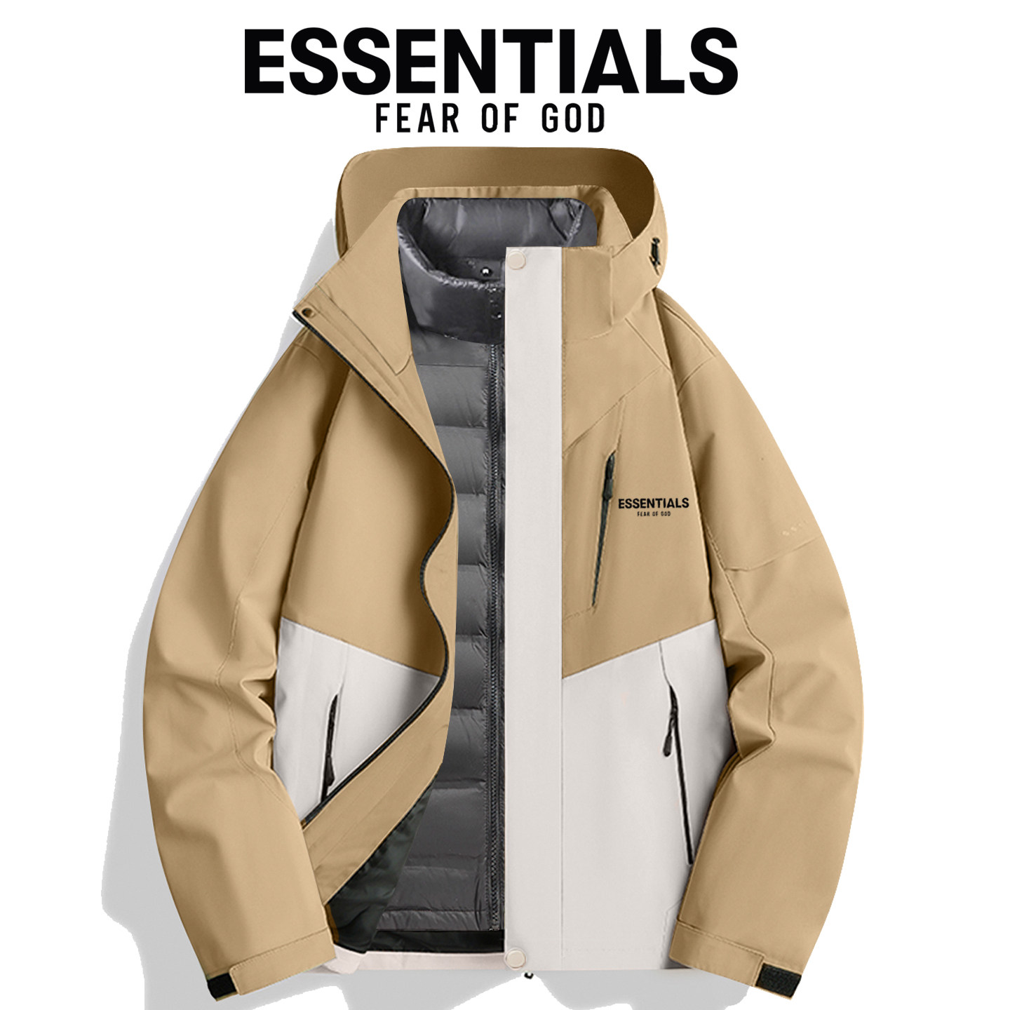 奥莱专区大码羽绒服男士冲锋衣两件套羽绒内胆可脱卸潮牌宽松防风