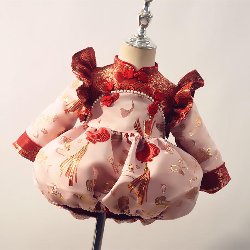 女童旗袍礼服长袖百天婴儿国风女宝秋冬生日周岁礼服中式连衣裙