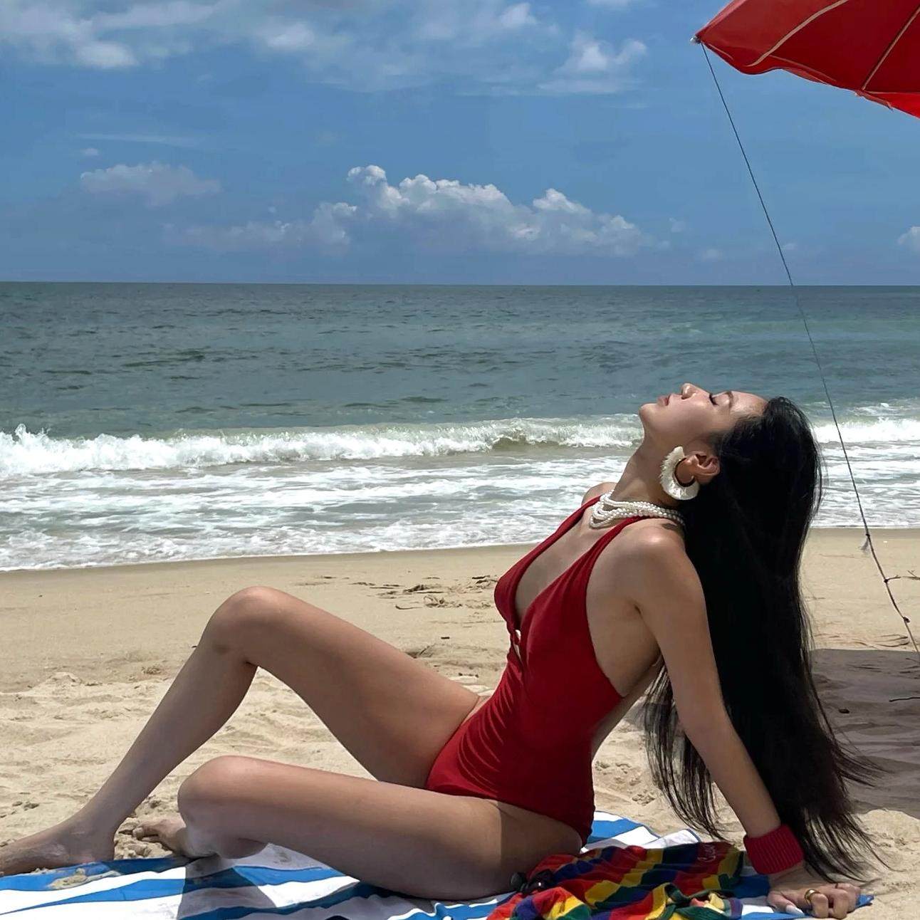 勃艮第红热辣新年温泉泳衣女性感