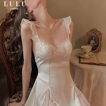 性感纯欲风吊带桑蚕丝睡衣女2025新款秋冬款蕾丝高级感带胸垫睡裙