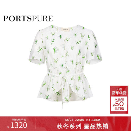 商场同款 宝姿PORTSPURE女装2025秋冬新品植物系度假V领衬衫上衣