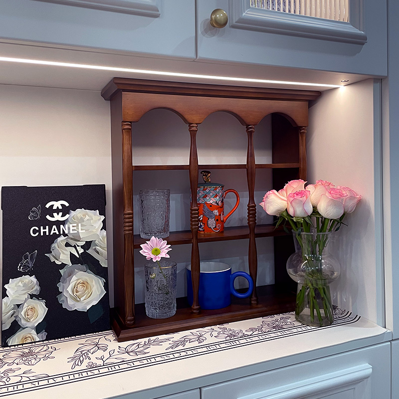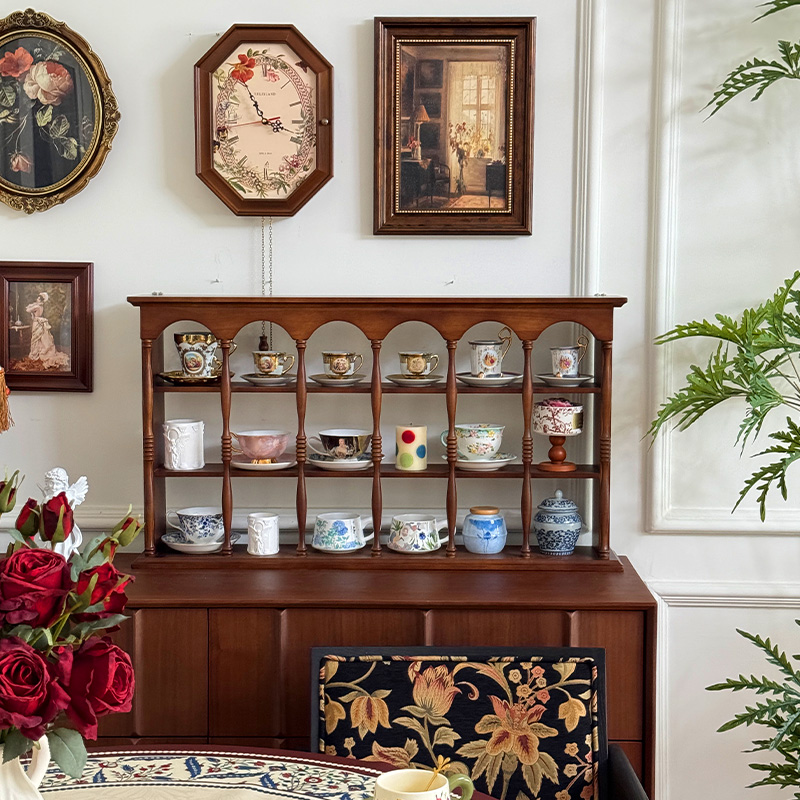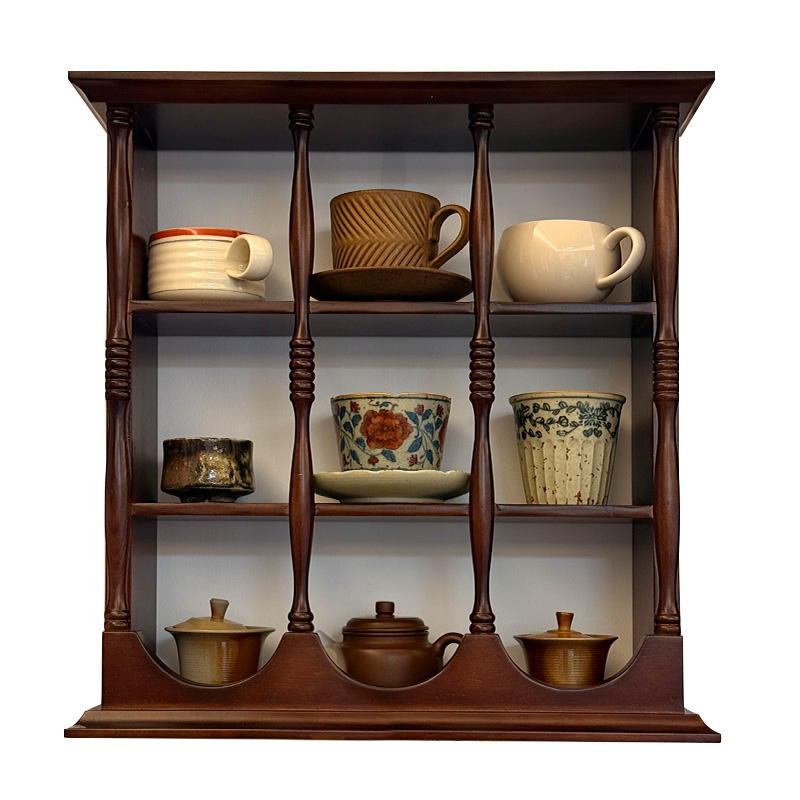 美式实木杯架格子架桌面水杯架茶杯柜咖啡展示架中古风收纳置物架