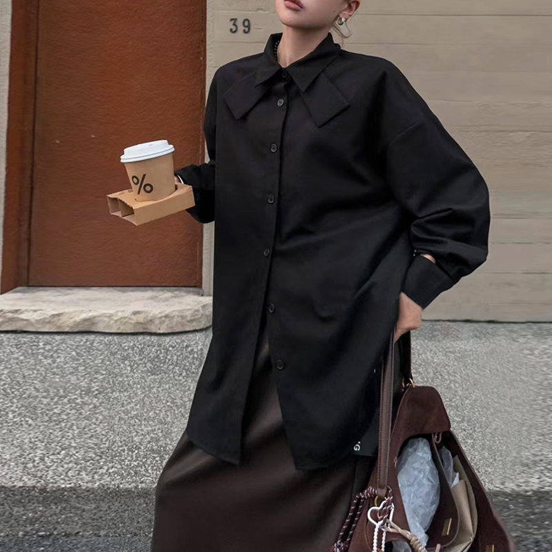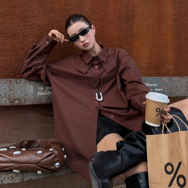 加厚磨毛宽松长袖衬衫高级感轻奢