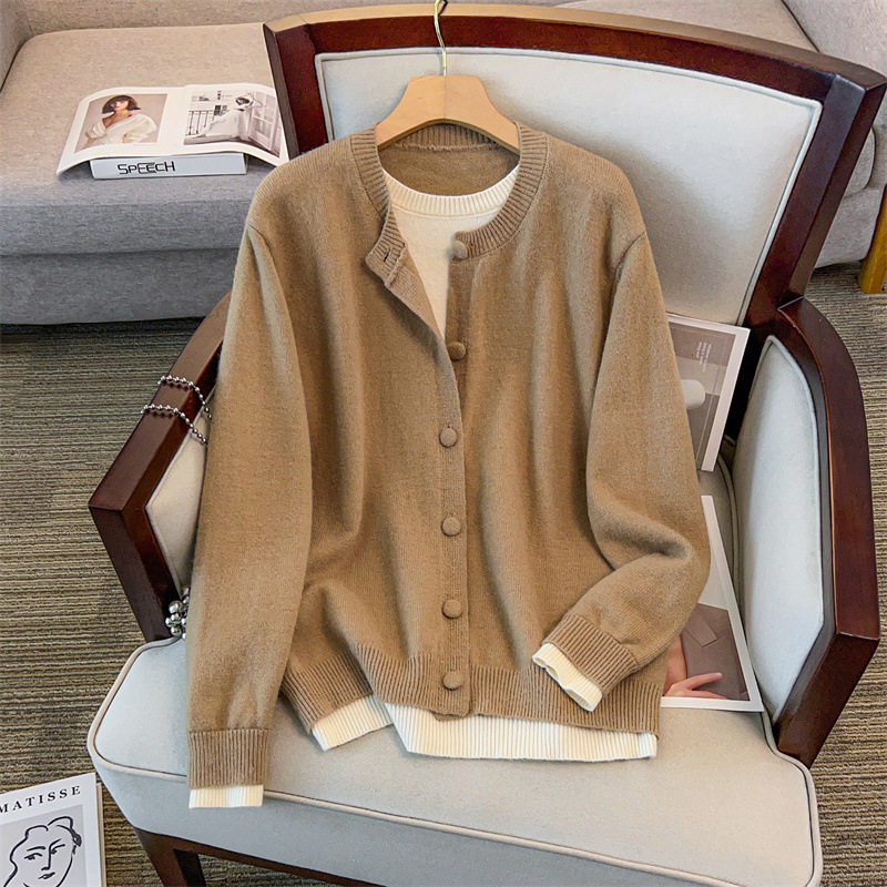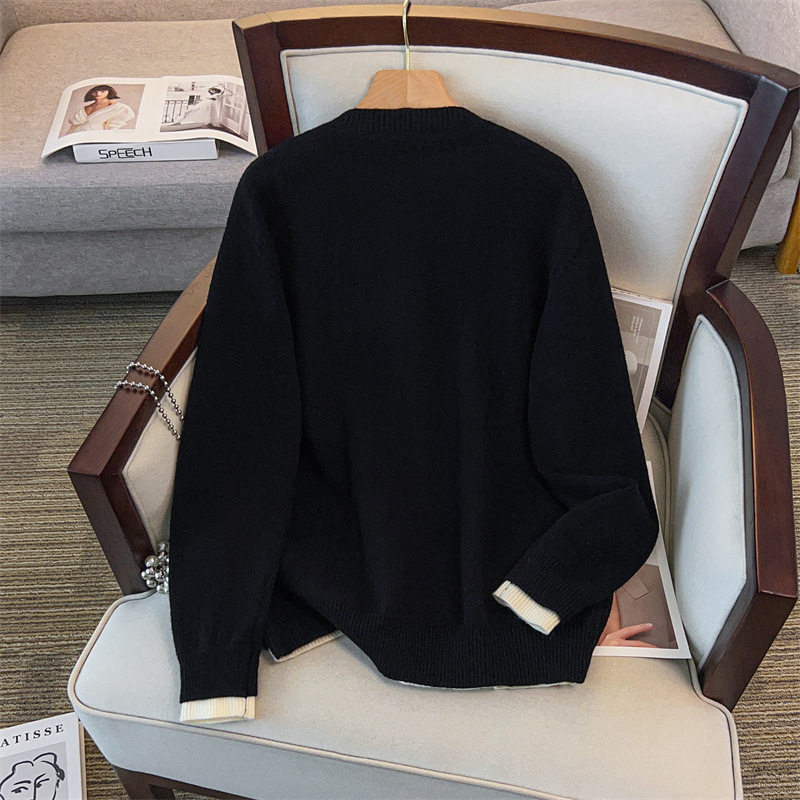 300斤特大码假两件针织正肩毛衣女春季胖mm200显瘦内搭打底衫上衣