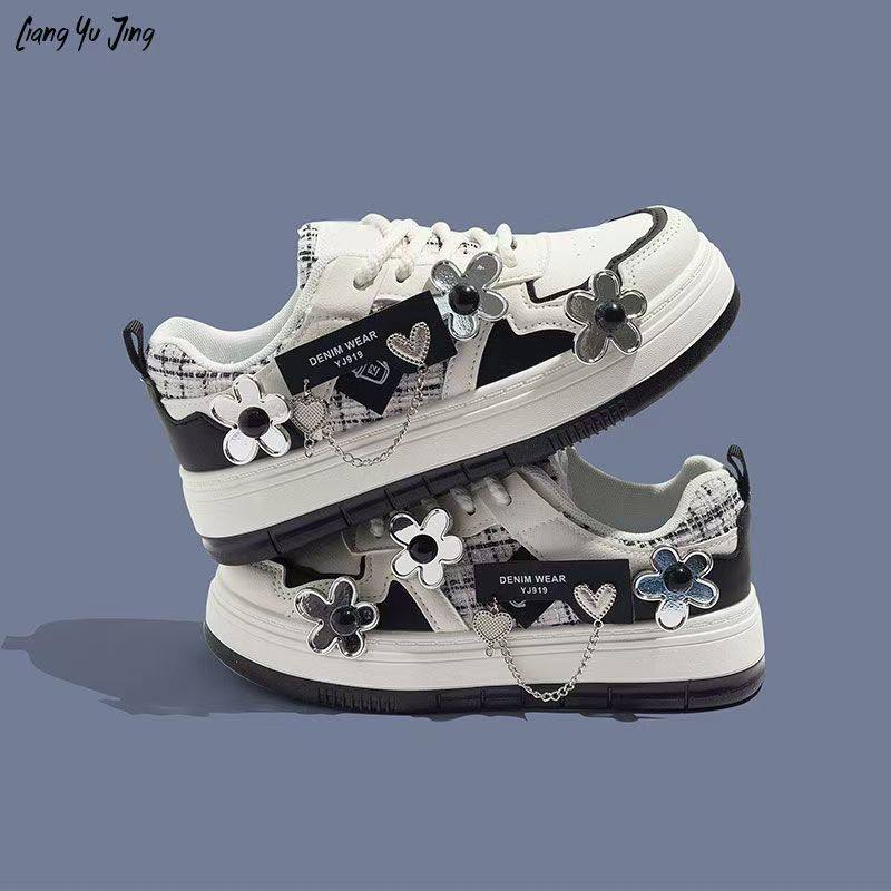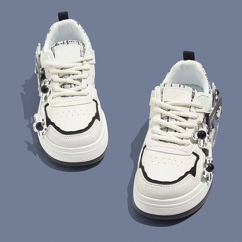 女童小白鞋2024夏秋新款花朵帆布鞋学生百搭休闲中大童厚底板鞋潮