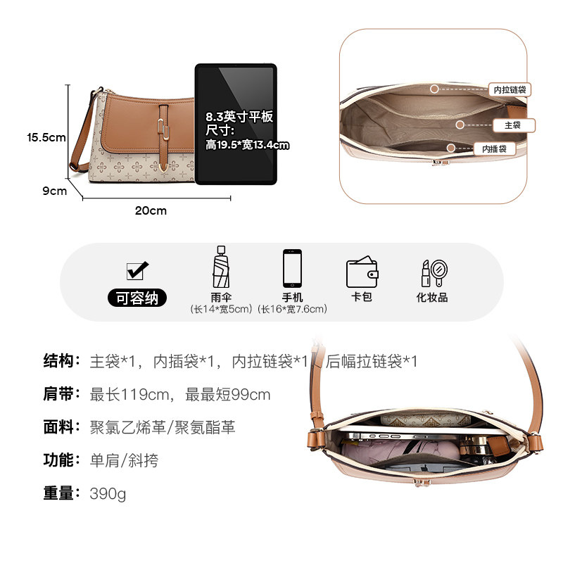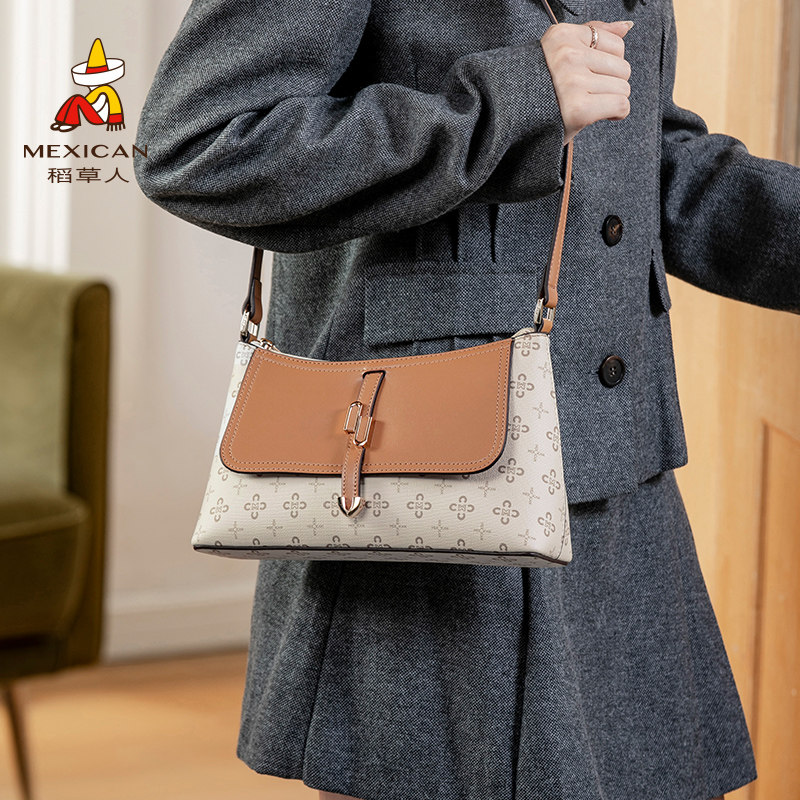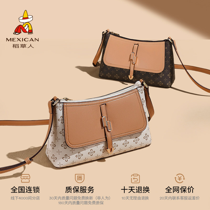 稻草人包包女式2025新款高级感复古印花斜挎包上班通勤单肩斜挎包