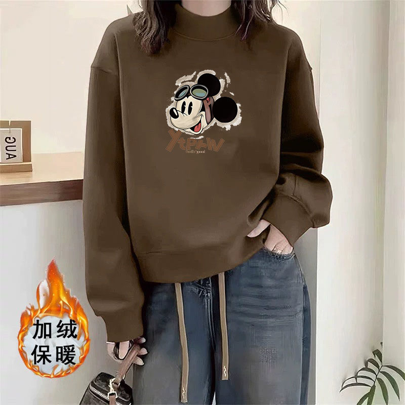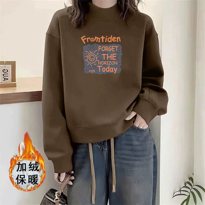 纯棉半高领无帽加绒卫衣女秋冬季2025年新款宽松显瘦百搭长袖上衣