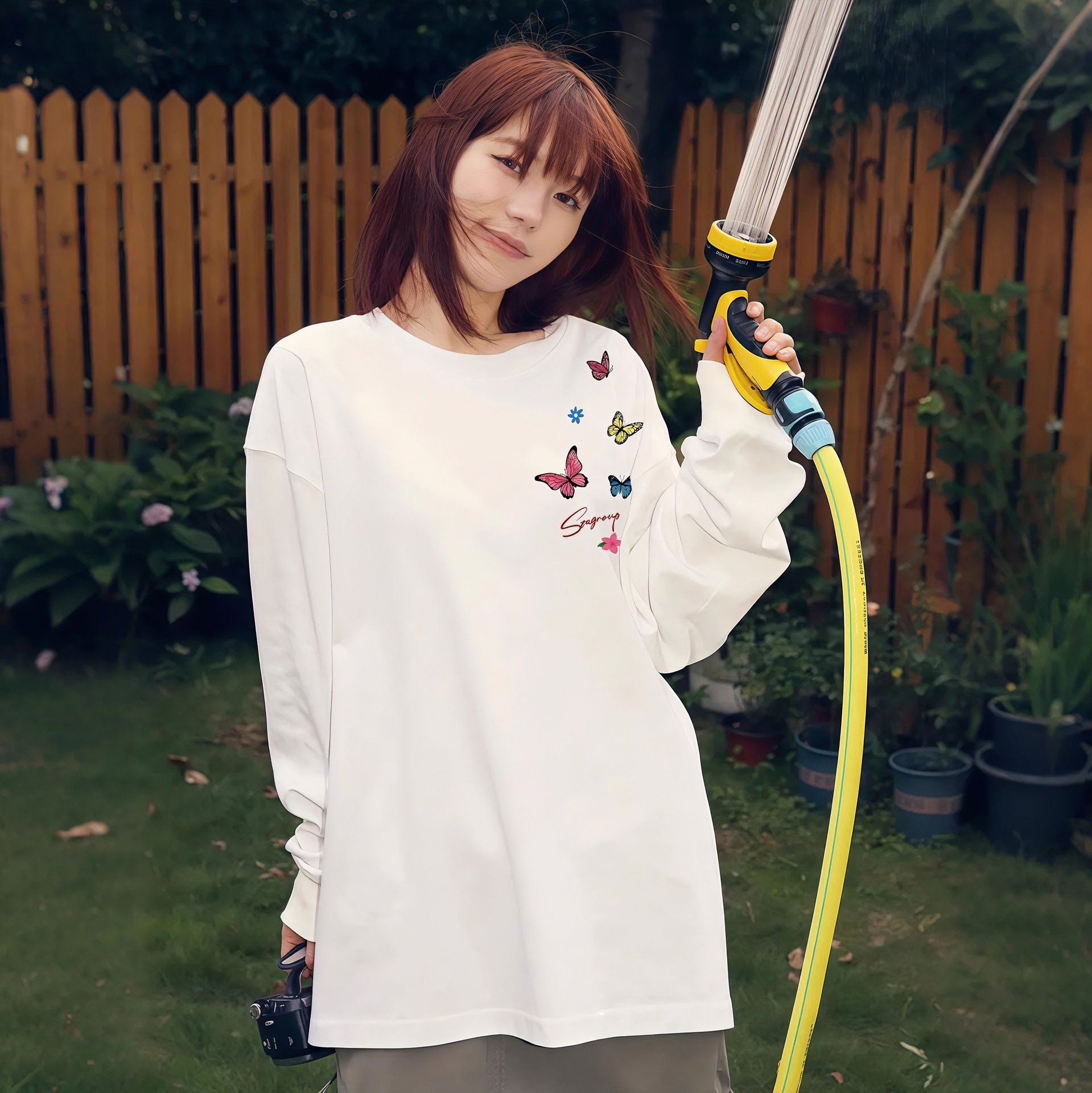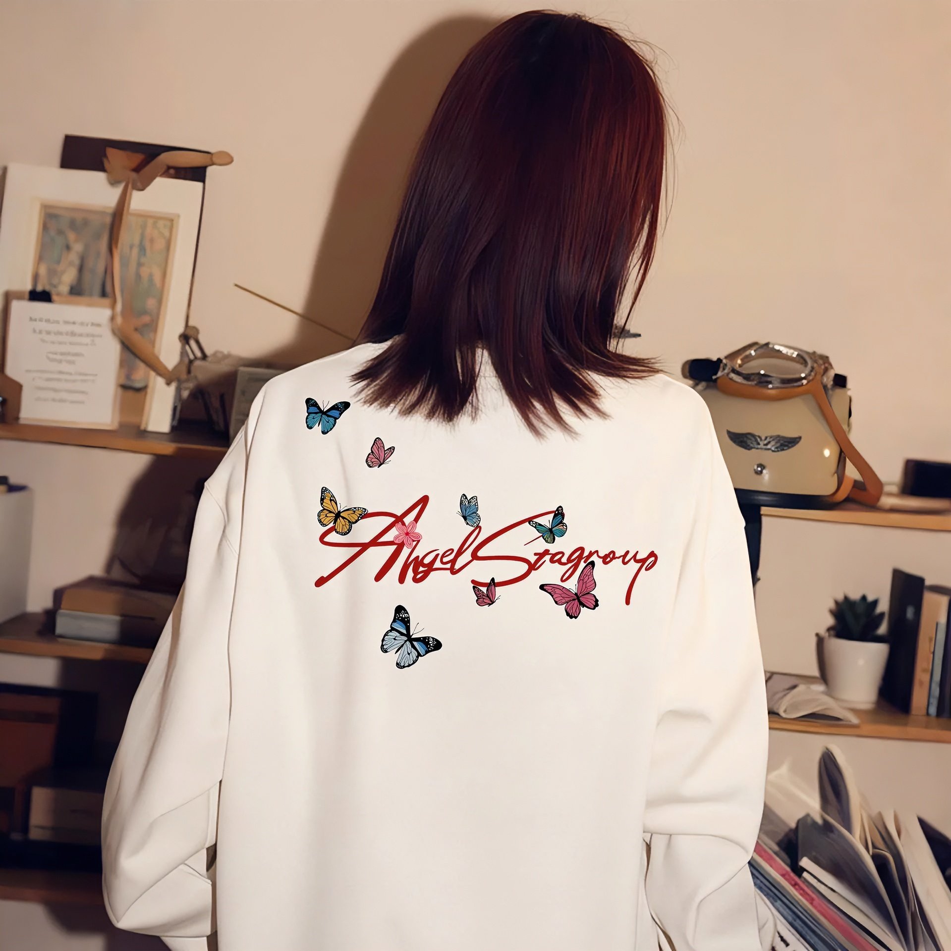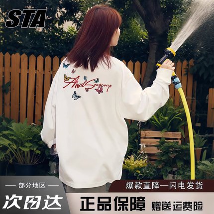 STA美式潮牌环绕蝴蝶印花长袖男女秋季复古高街重磅纯棉情侣卫衣