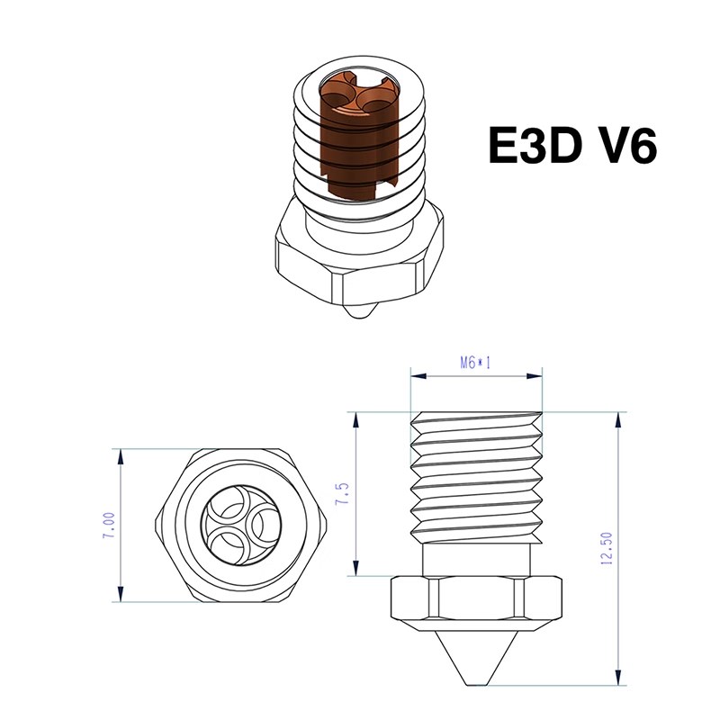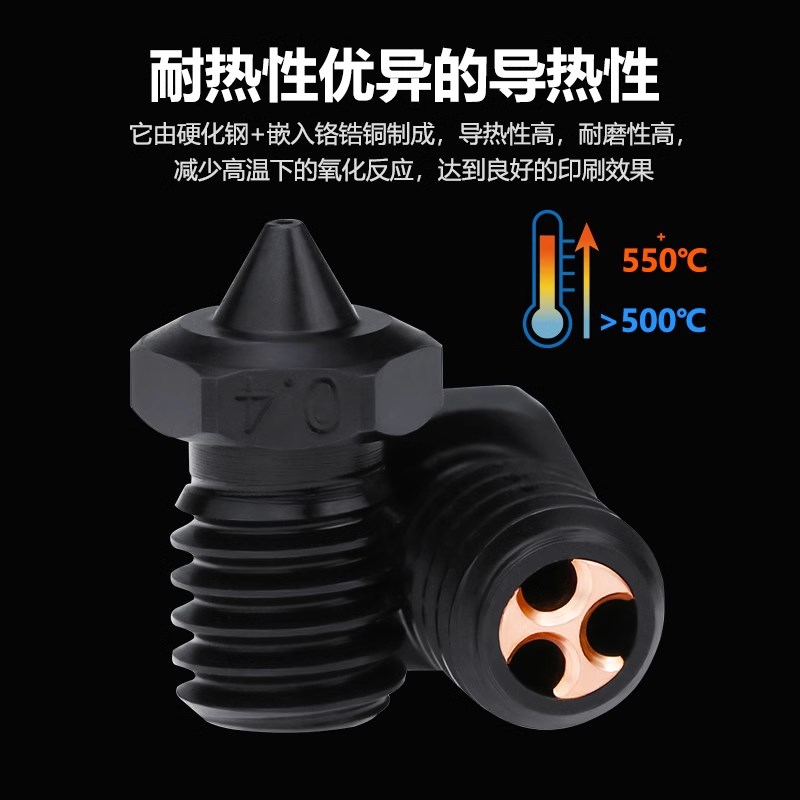 3d打印机配件 E3D V6硬化钢喷嘴CHT克隆高流量喷头耐磨耐高温喷嘴