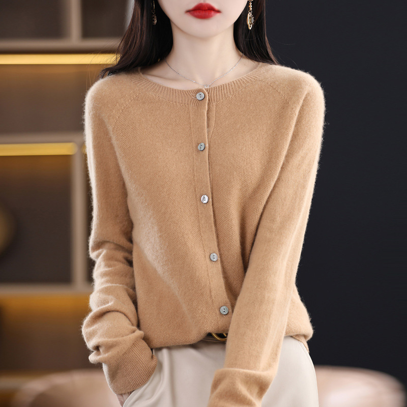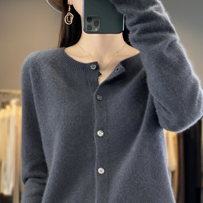 新款 一线成衣全针织开衫女士秋冬宽松外套百搭舒适毛衣潮纯色