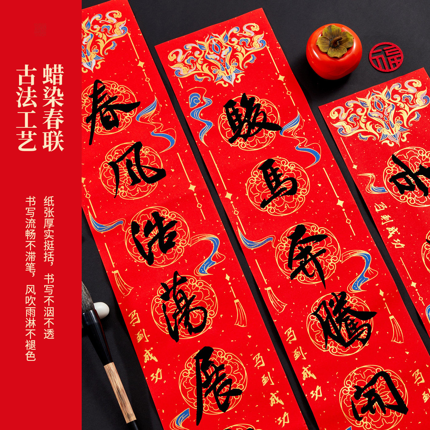 万年红对联纸空白手写春联纸专用纸洒金蜡染加厚五言七言2026年马年新款写对联书法作品红色宣纸春联纸批发