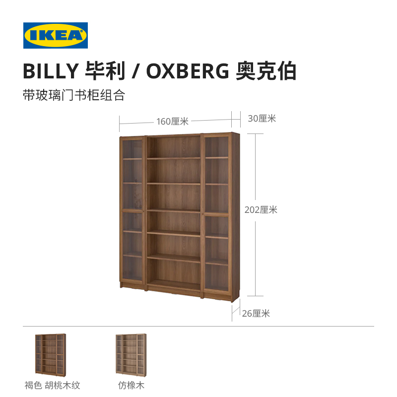 IKEA宜家毕利奥克伯带玻璃门书柜