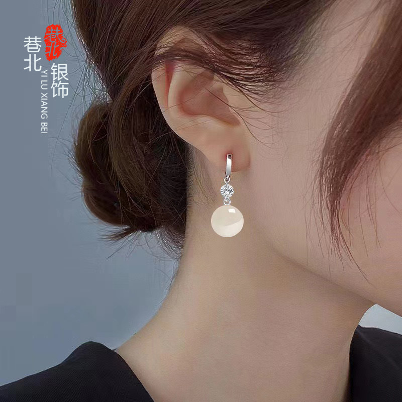 S925纯银耳扣水钻玛瑙耳环女珍珠耳坠防过敏韩版个性气质新款银饰
