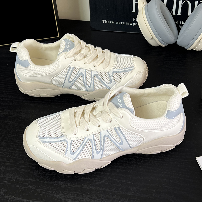 真皮德训鞋女薄款网面透气2025夏季新款厚底运动休闲软底阿甘鞋潮