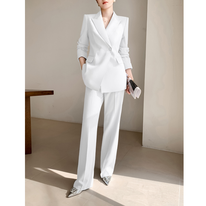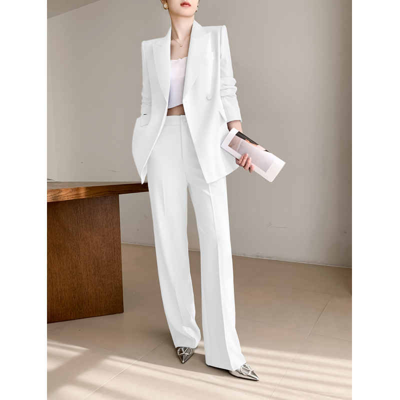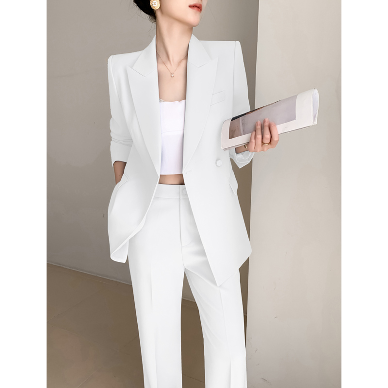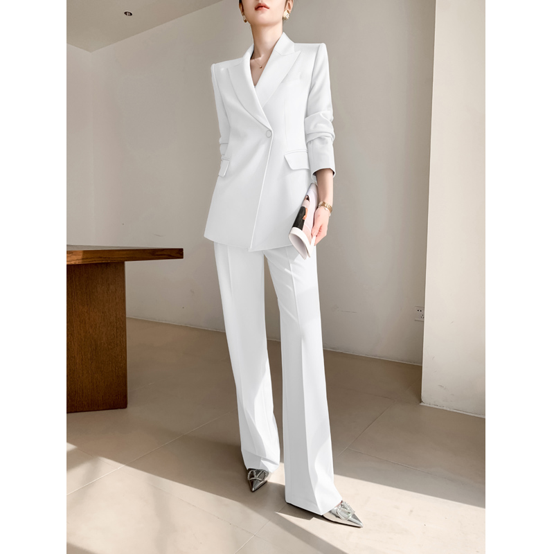 白色西装套装女春秋冬高级感职业正装名媛气质阔腿裤休闲西服外套
