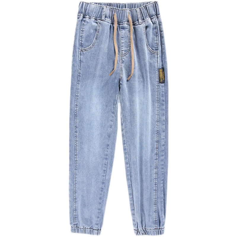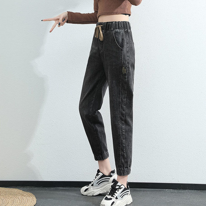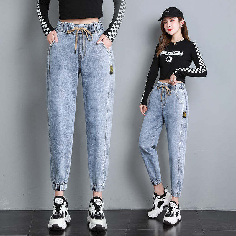 松紧腰牛仔裤女2025年新款春秋宽松高腰显瘦哈伦小脚老爹萝卜裤子