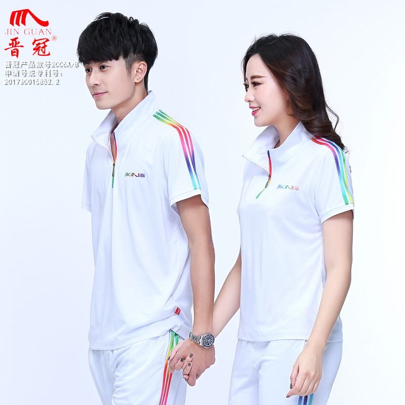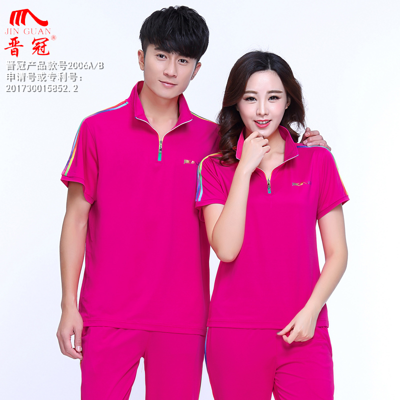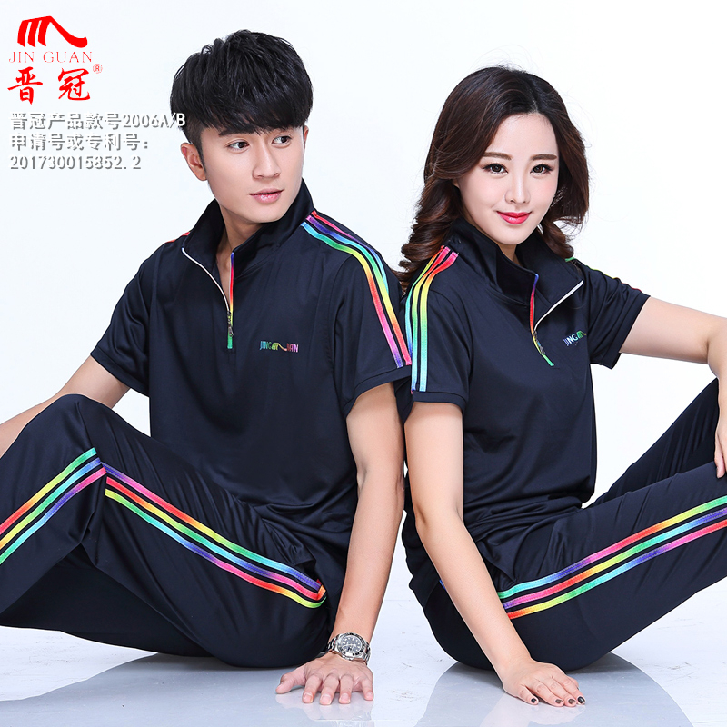 晋冠夏季短袖长裤运动套装大码女士半袖t恤广场舞团体服男休闲服