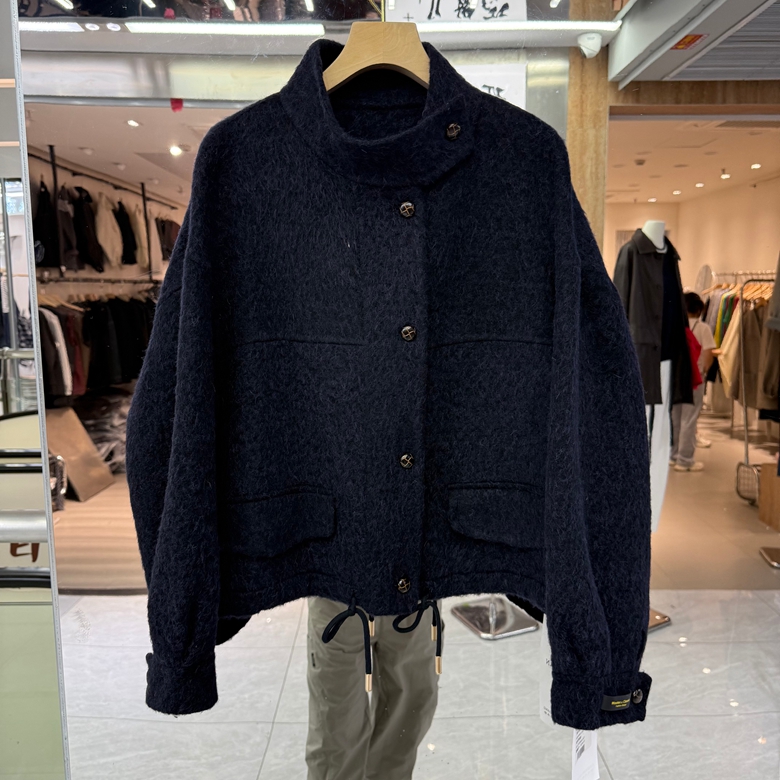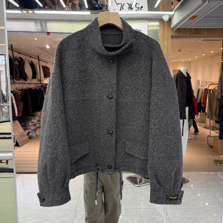 2025年秋冬新款短款羊驼苏力双面羊绒大衣外套立领单排扣下摆抽绳