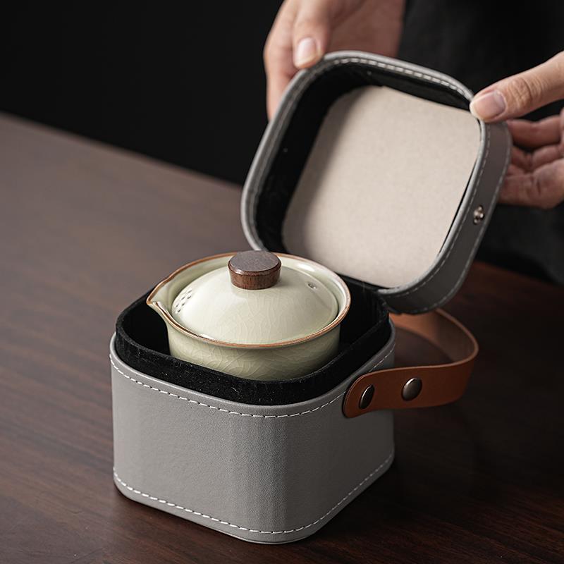 汝窑快客杯一壶三杯陶瓷家用旅行功夫茶具套装户外露营便携式定制