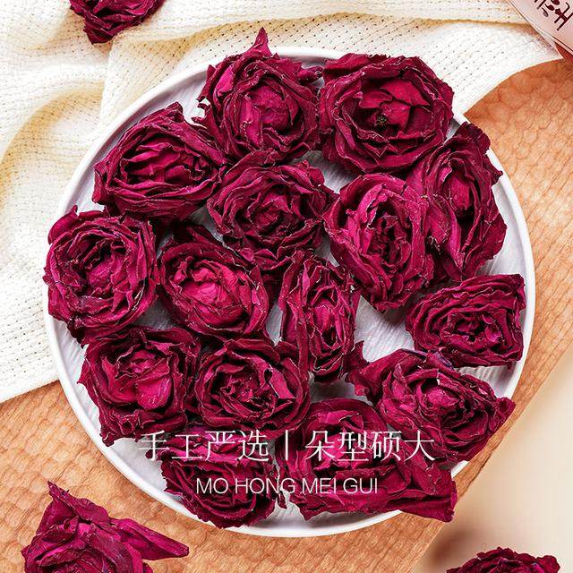 云南墨红玫瑰花茶重瓣红玫瑰花草茶精选大朵干玫瑰花冠泡水50g装