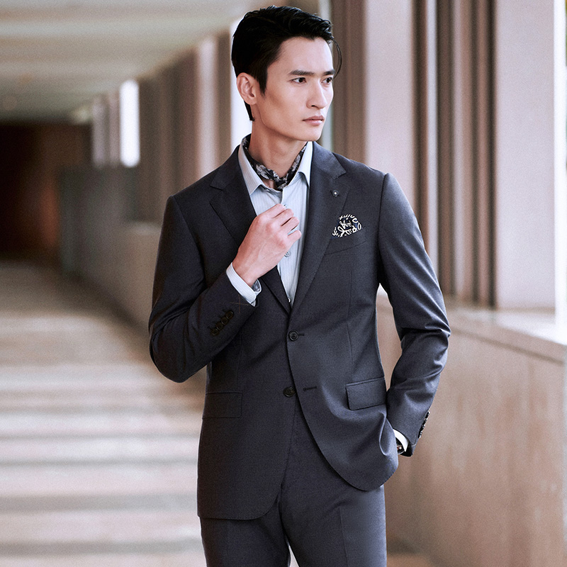 【REDA】报喜鸟2025春季新款男士100%羊毛正装单开衩西服上衣西裤