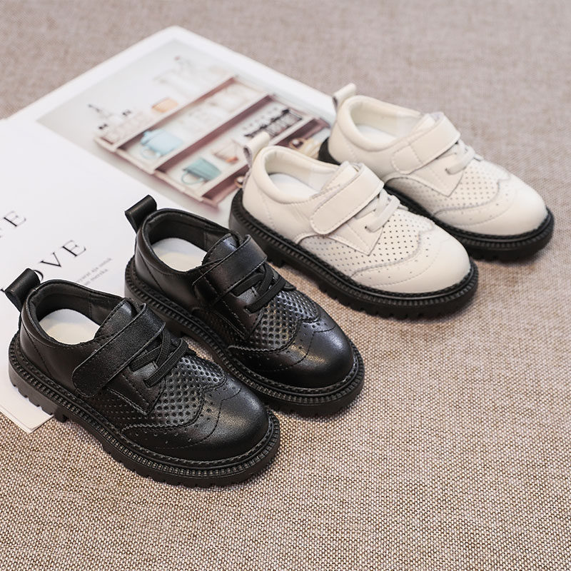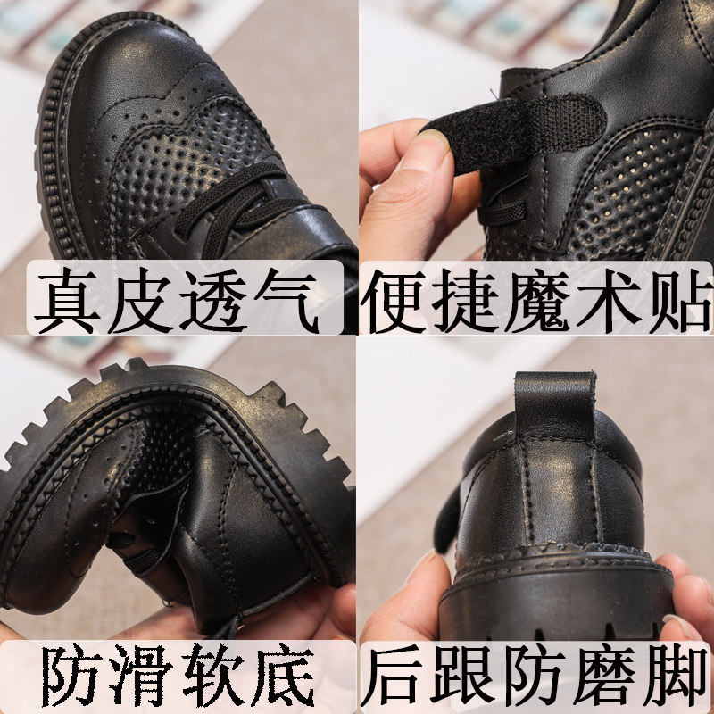 男童皮鞋真皮镂空透气软底凉鞋2023春夏儿童单鞋魔术贴女童表演鞋