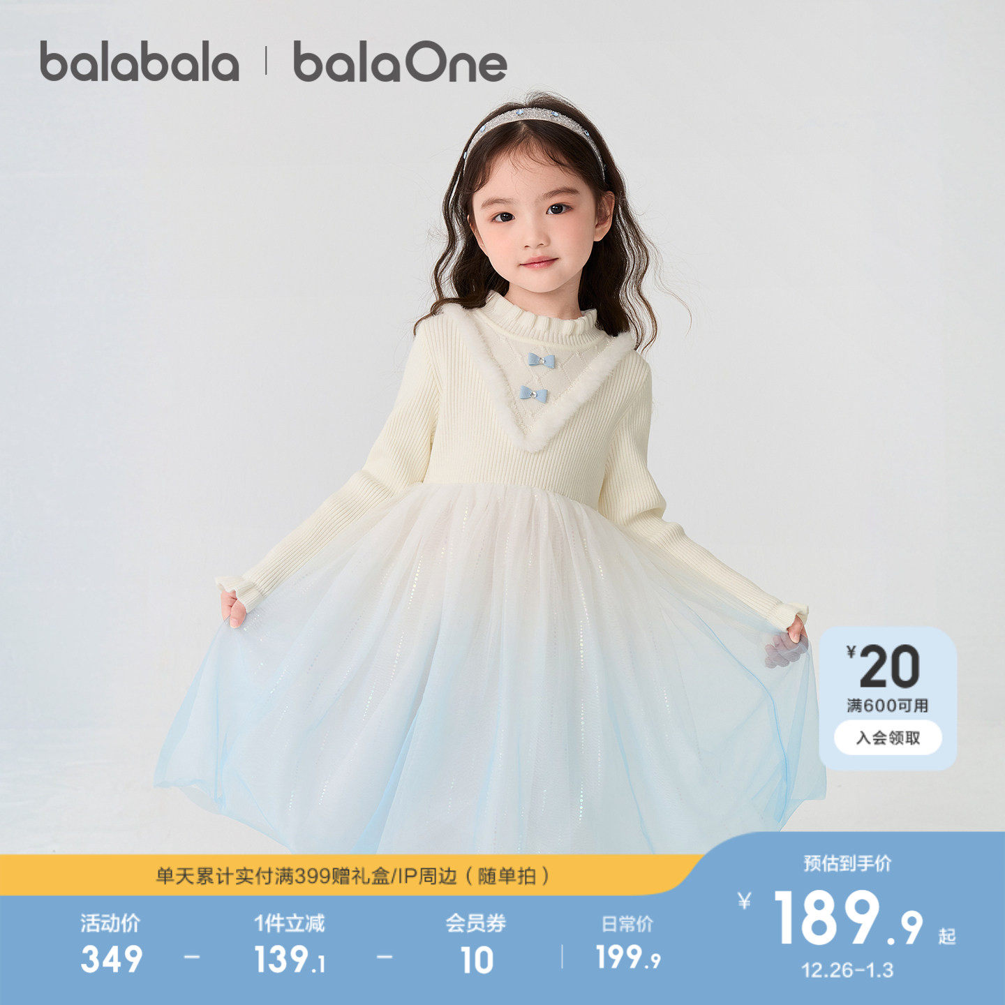 巴拉巴拉童装女童公主裙2025秋冬装新款儿童连衣裙拼接针织网纱裙