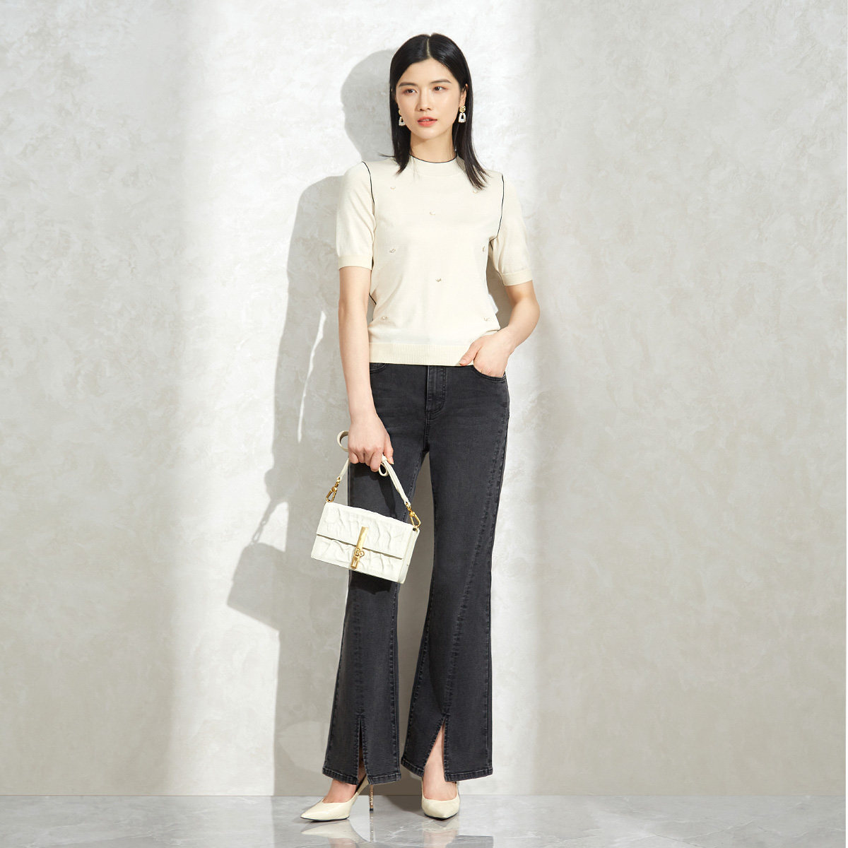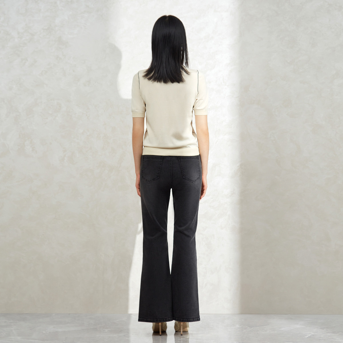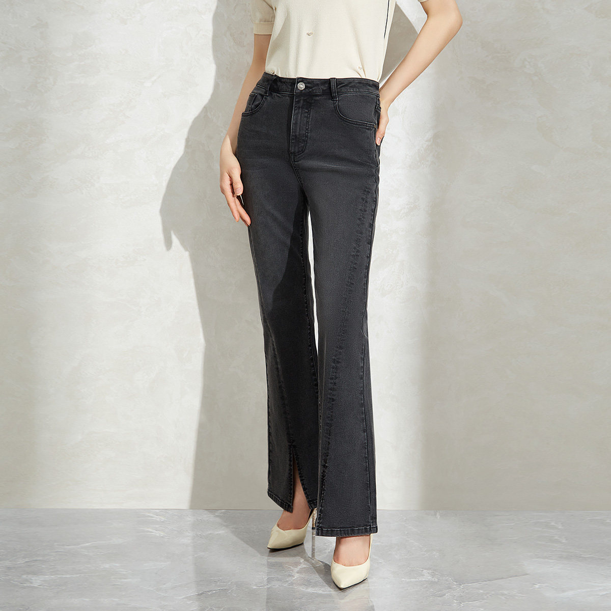 BBLLUUEE粉蓝衣橱经典复古微喇叭牛仔裤女2025秋装ol黑色耐磨长裤