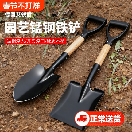 铁锹铲子铁铲农用加厚锰钢家用种菜种花工具园艺户外挖沙木柄挖地