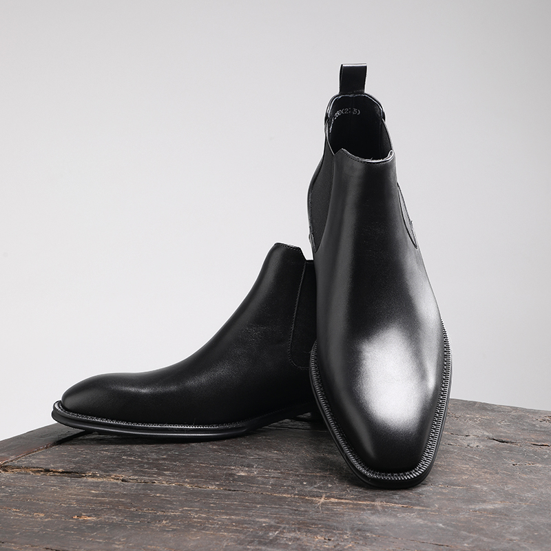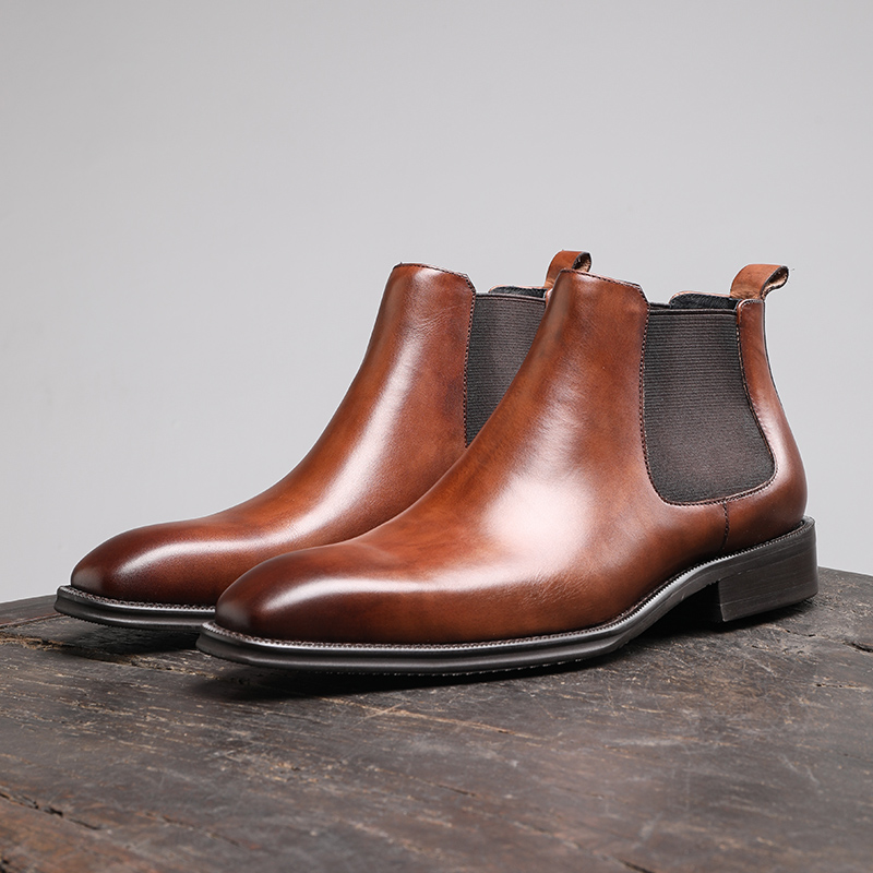 意大利复古手工商务短靴英伦方头皮靴真皮高帮正装皮鞋切尔西靴男