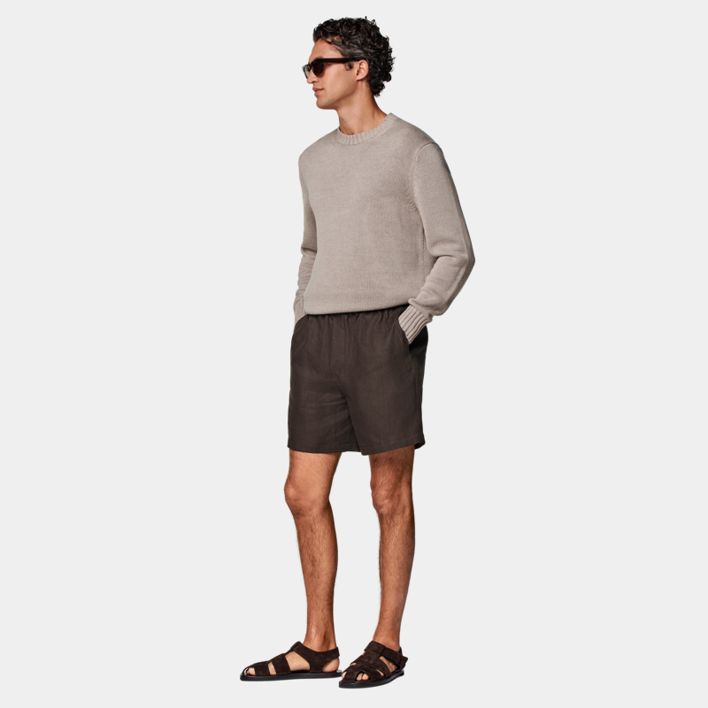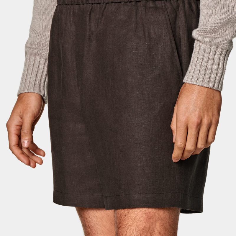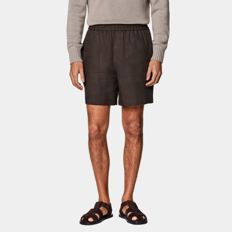 SUITSUPPLY夏季意大利面料中棕直筒亚麻男士短裤