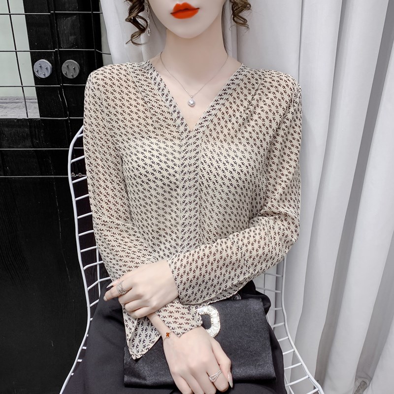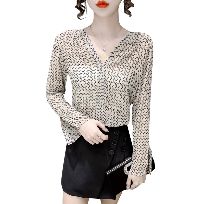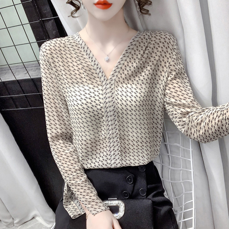 碎花雪纺衬衫女长袖春秋装2024年新款小衫设计感小众v领衬衣上衣
