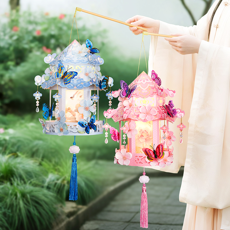 中秋节古风花灯儿童灯笼2025新款手工diy制作材料包手提发光宫灯