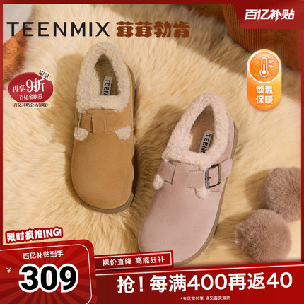 天美意厚底加绒毛毛鞋勃肯鞋女雪地靴短靴棉鞋冬新款KMZ05DM4