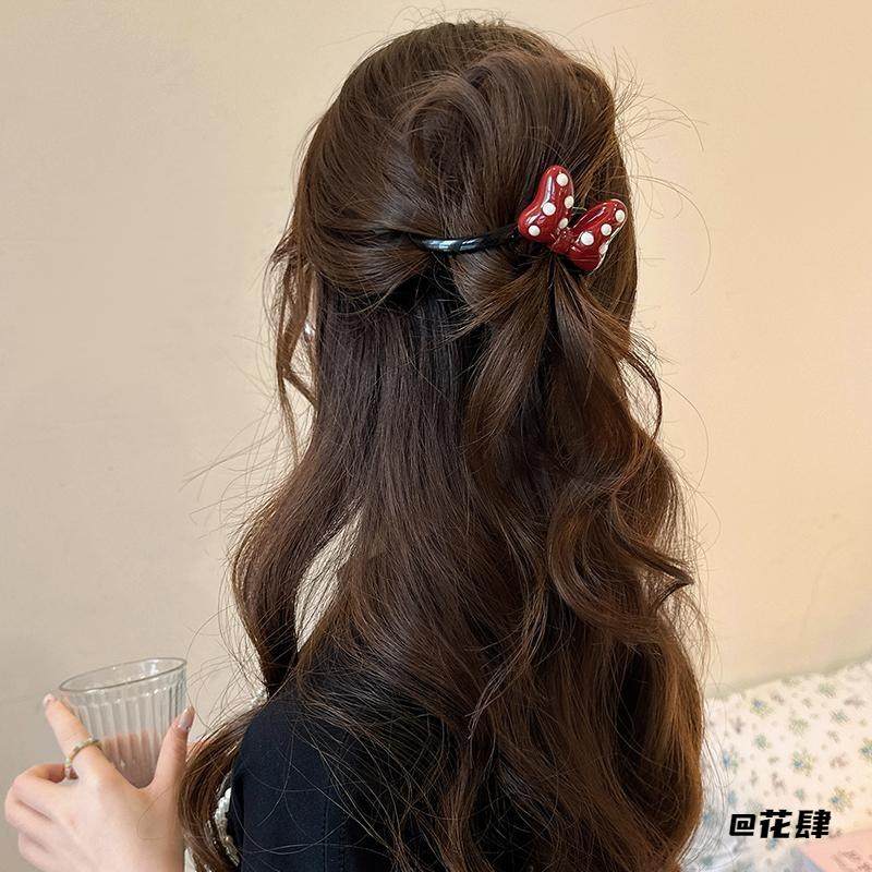 盘发迪士尼拍照抓夹迪士尼拍照必备米奇红蝴蝶结发夹韩系波点可爱