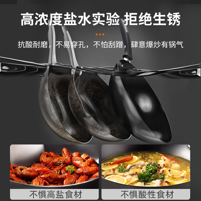 爱仕达老式大铁锅炒锅圆底家用无涂层燃气灶尖底精铁炒菜锅免开锅