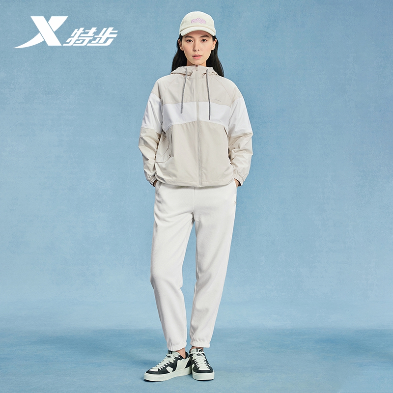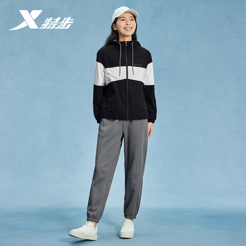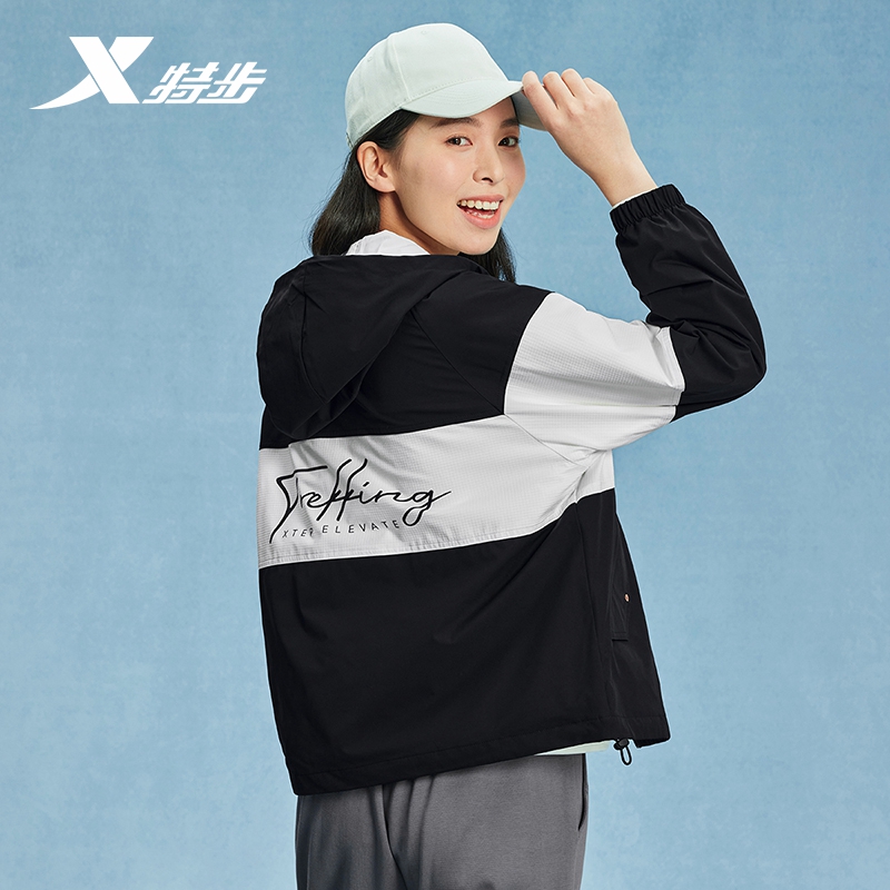 特步运动外套女2025春季新款防风双层风衣连帽女夹克976128120286