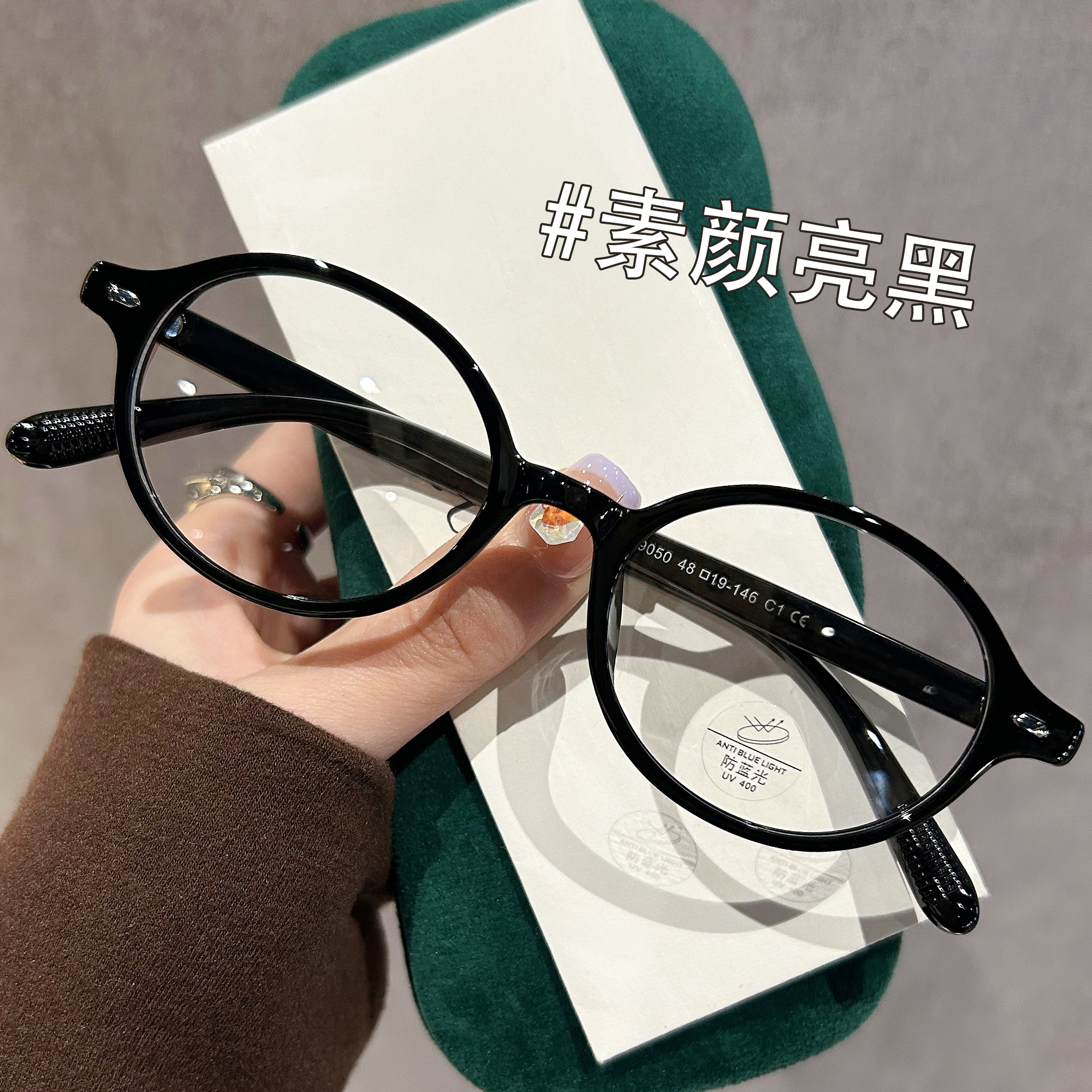 miu系书呆子黑框眼镜女近视可配度数高级感素颜复古圆框平光眼睛