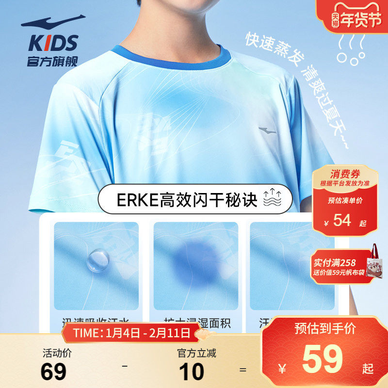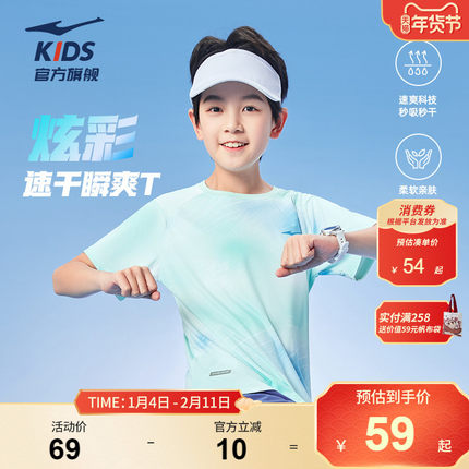 鸿星尔克童装儿童短袖T恤男童透气冰感青少年夏季女童运动速干衣