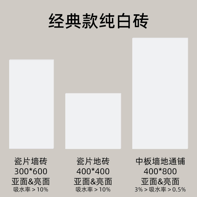 斯米克瓷砖300×600纯色纯白厨房卫生间阳台哑光墙砖防滑地砖白色