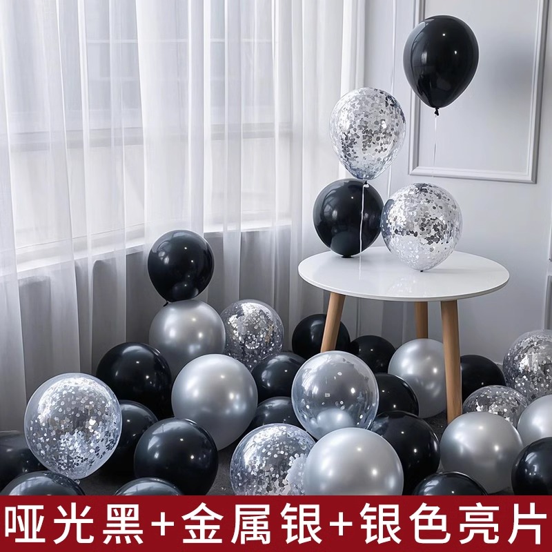 黑色气球粉色女朋友生日派对高级感布置浪漫告白求婚氛围场景装饰
