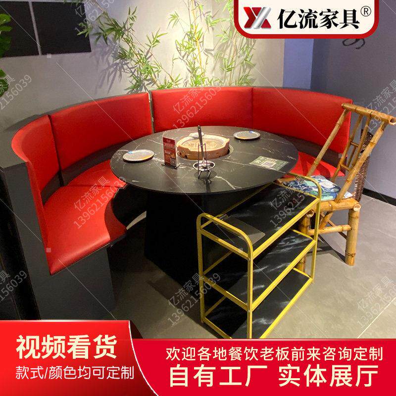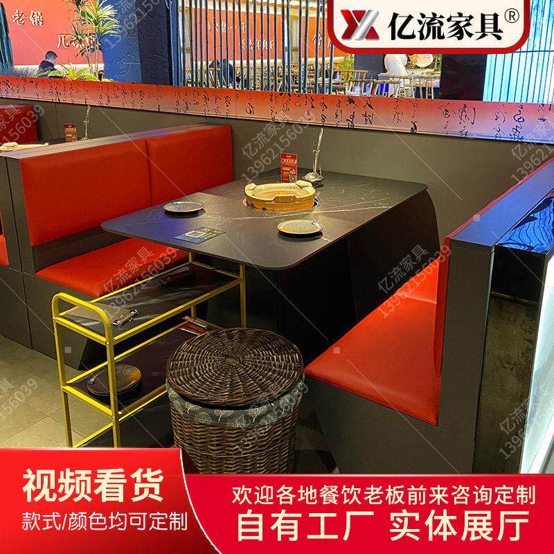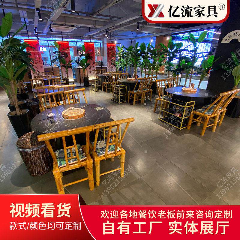餐厅桌椅组合牛杂煲炭火烧烤桌打边炉实木包边岩板火锅桌烤肉桌