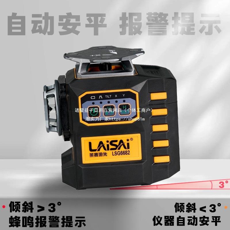 莱赛激光电子水平仪红绿光12线LSG6682高精贴墙贴地遥控自动安平