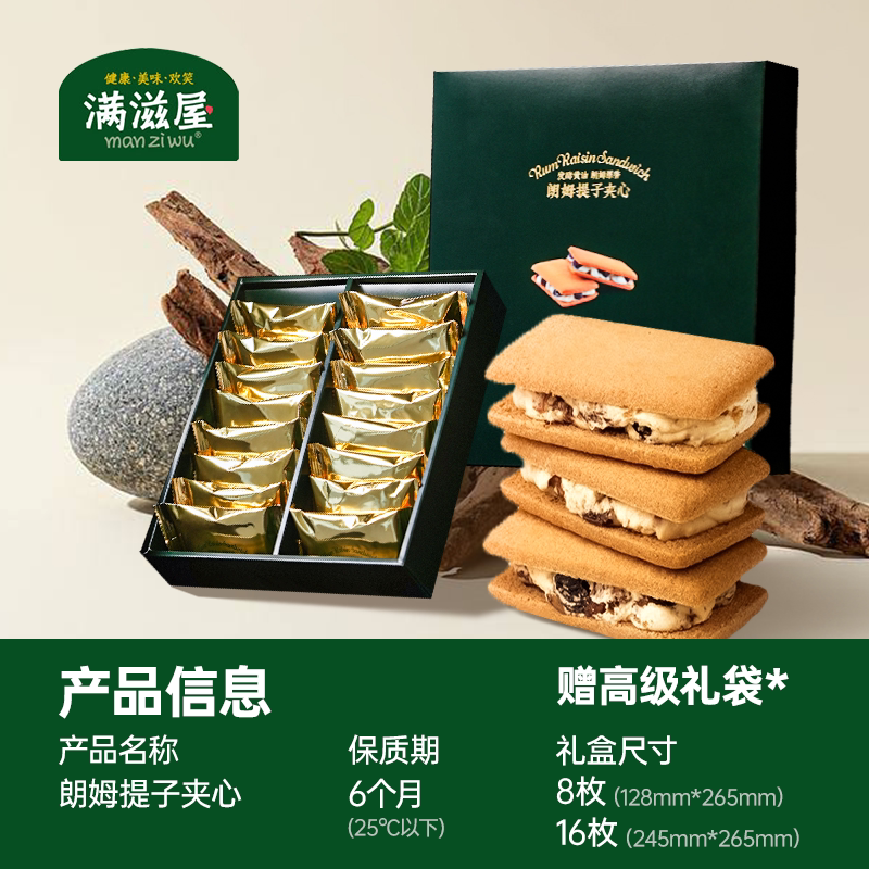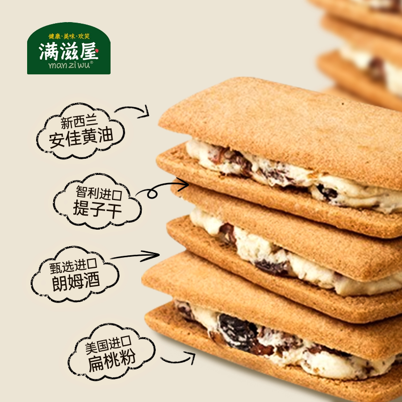 满滋屋朗姆提子夹心白脱饼干560g冻啃黄油曲奇零食年货拜年礼物盒