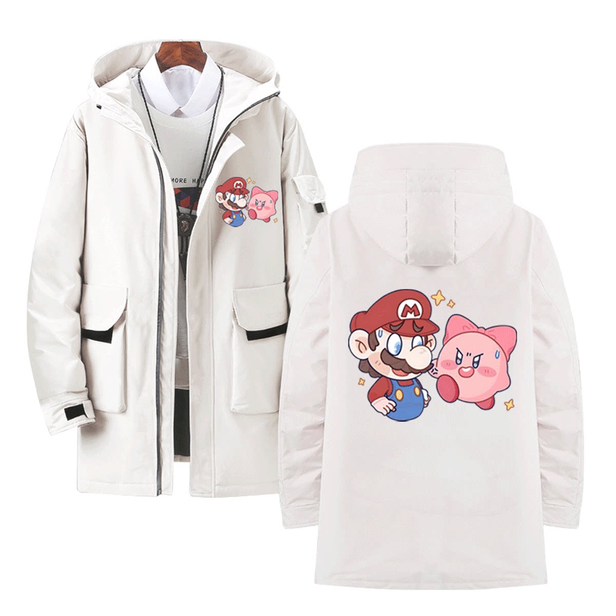星之卡比Q版卡通联名超级马里奥游戏周边男女休闲定制带帽羽绒服